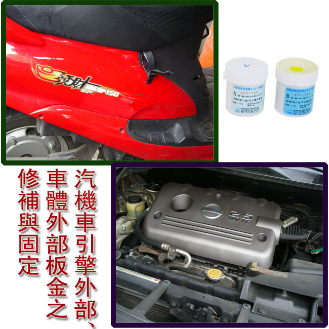 1.適用汽車車體鈑金、水箱、引擎外部裂縫之修補和固定